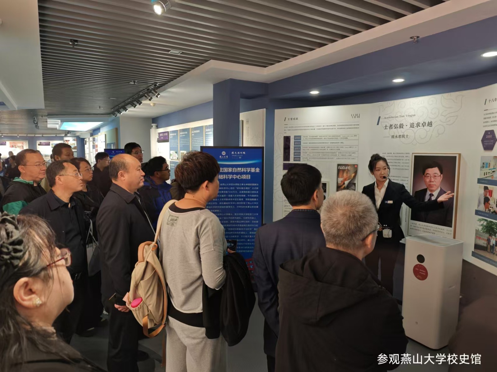 随后,大家前往燕山大学校史馆,馆内展示了学校自创办以来的发展历程、重要成就及杰出校友。馆内陈列的珍贵文物、历史照片和文字资料,让大家对燕山大学的辉煌历史有了更深刻的认识。专业讲解员详细介绍了学校在科学研究、人才培养和社会服务等方面的贡献。在校史馆中,大家不仅了解了学校的历史沿革,还对许多优秀校友的故事产生了浓厚的兴趣。这些校友在各自领域中取得的卓越成就,激励着大家在自己的职业生涯中不断努力追求卓越。了解校史不仅增强了对燕山大学的归属感,也为他们的专业发展提供了榜样和动力。