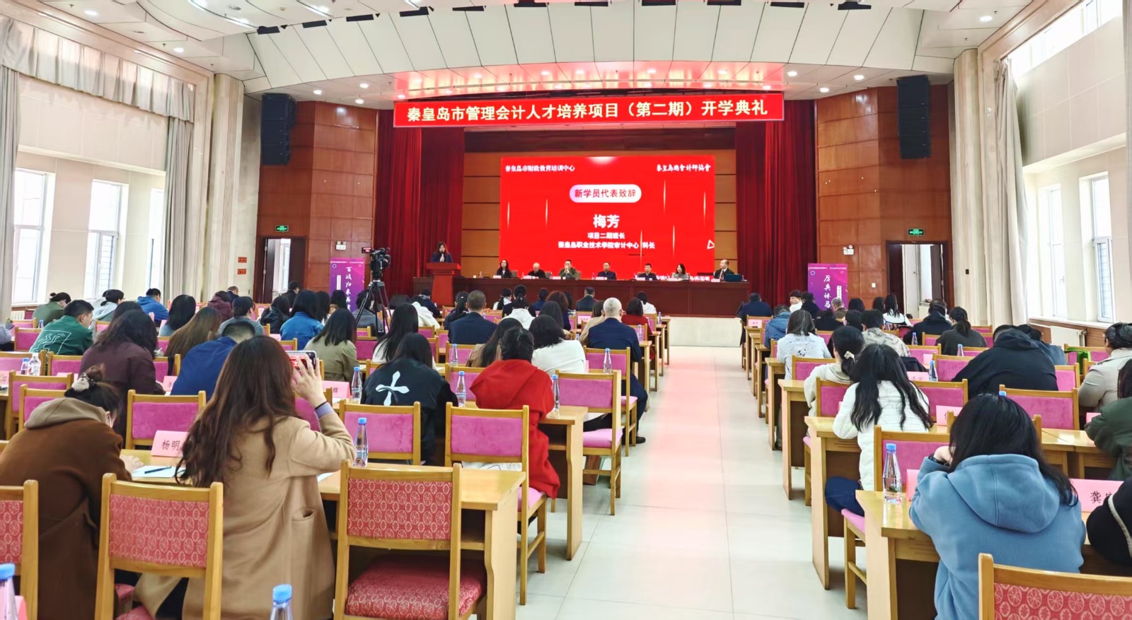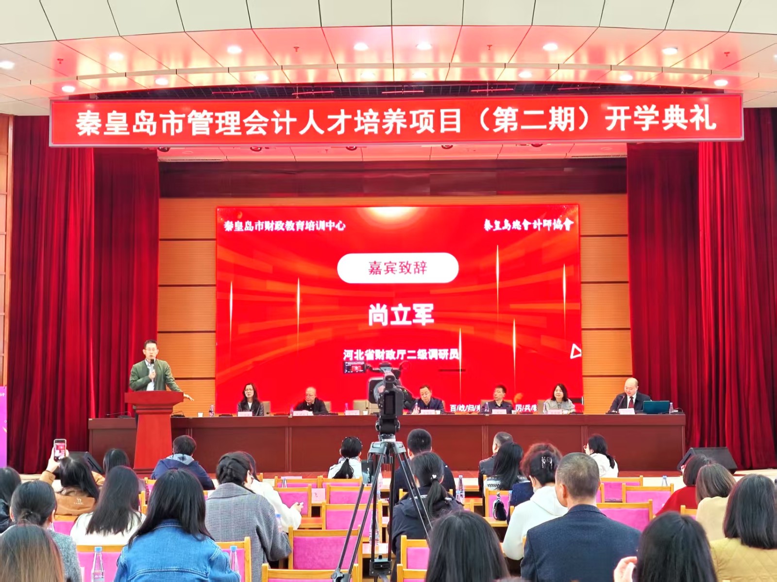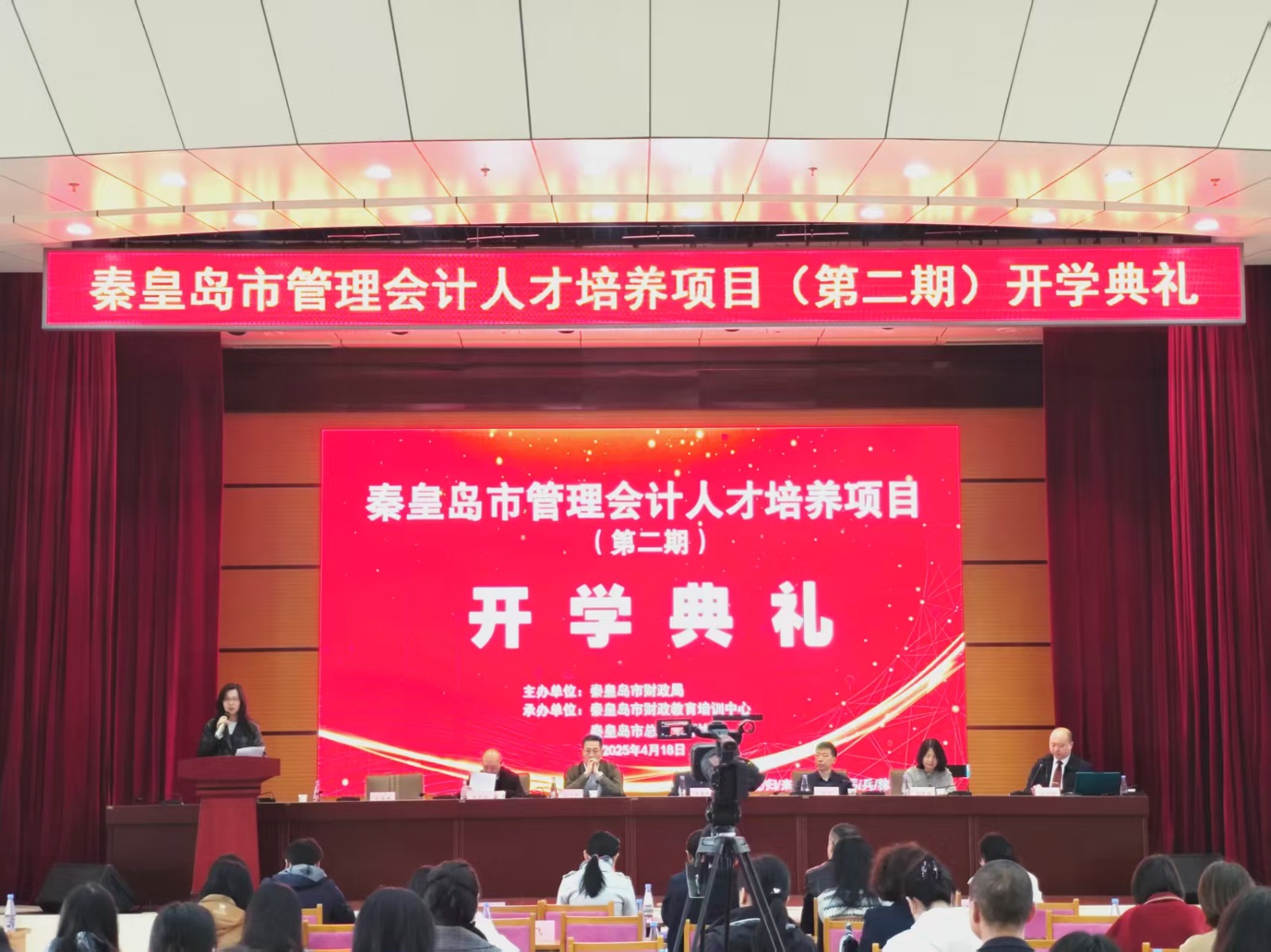 2025年4月18日上午,秦皇岛市管理会计人才培养项目第二期在秦皇岛市财政局大礼堂举行了开学典礼。河北省财政厅二级调研员的尚立军处长、主办方市财政局张赞松副局长、会计科李涧冰科长、承办方市财政教育培训中心任海涛主任、秦皇岛总会计师协会乔志会长、市管理会计人才培养项目教研组周荣娟组长、第二期项目46名新学员、协会理事以及各界嘉宾百余人出席了大会。